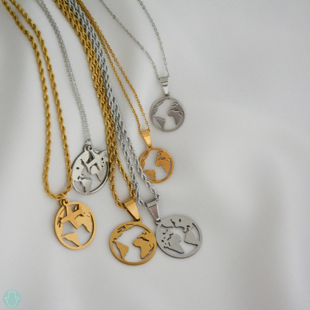 Mapa Mundo 2,67 € 8,90 € Desconto de 70%. Partilhar Cor Dourado Prateado Malha Fininha Cordão Pendente Mundo Mini Mundo Grande Comprar Contactar Material: aço inoxidável Comprimento: 45 cm + 5 cm extensão